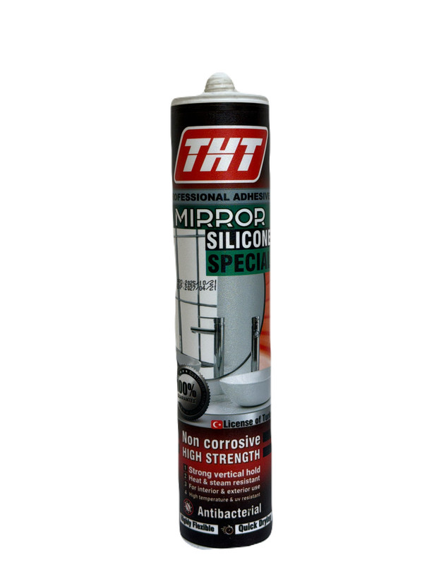 چسب سیلیکون مخصوص آینه ، سیلیکونی خنثی با کیفیت چسبندگی بسیار بالاست که دارای یک نوع چسبندگی دائمی به آینه، سطوح رنگی، آهن، چوب و گچ می باشد.